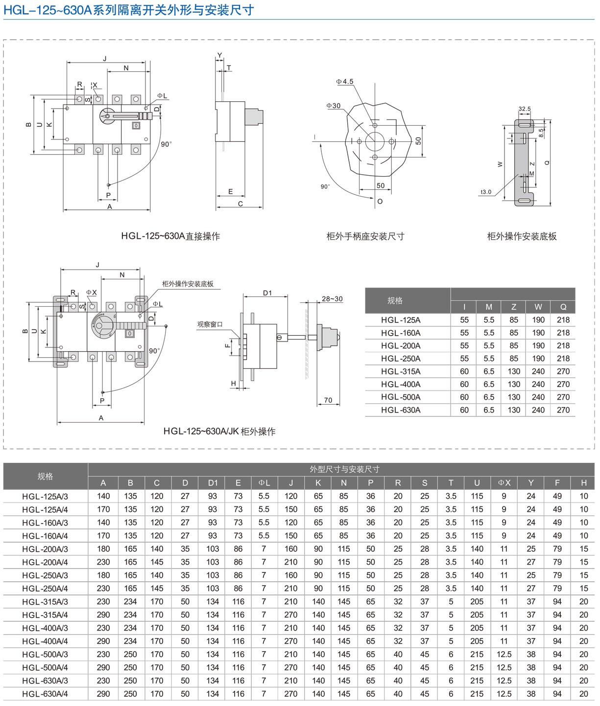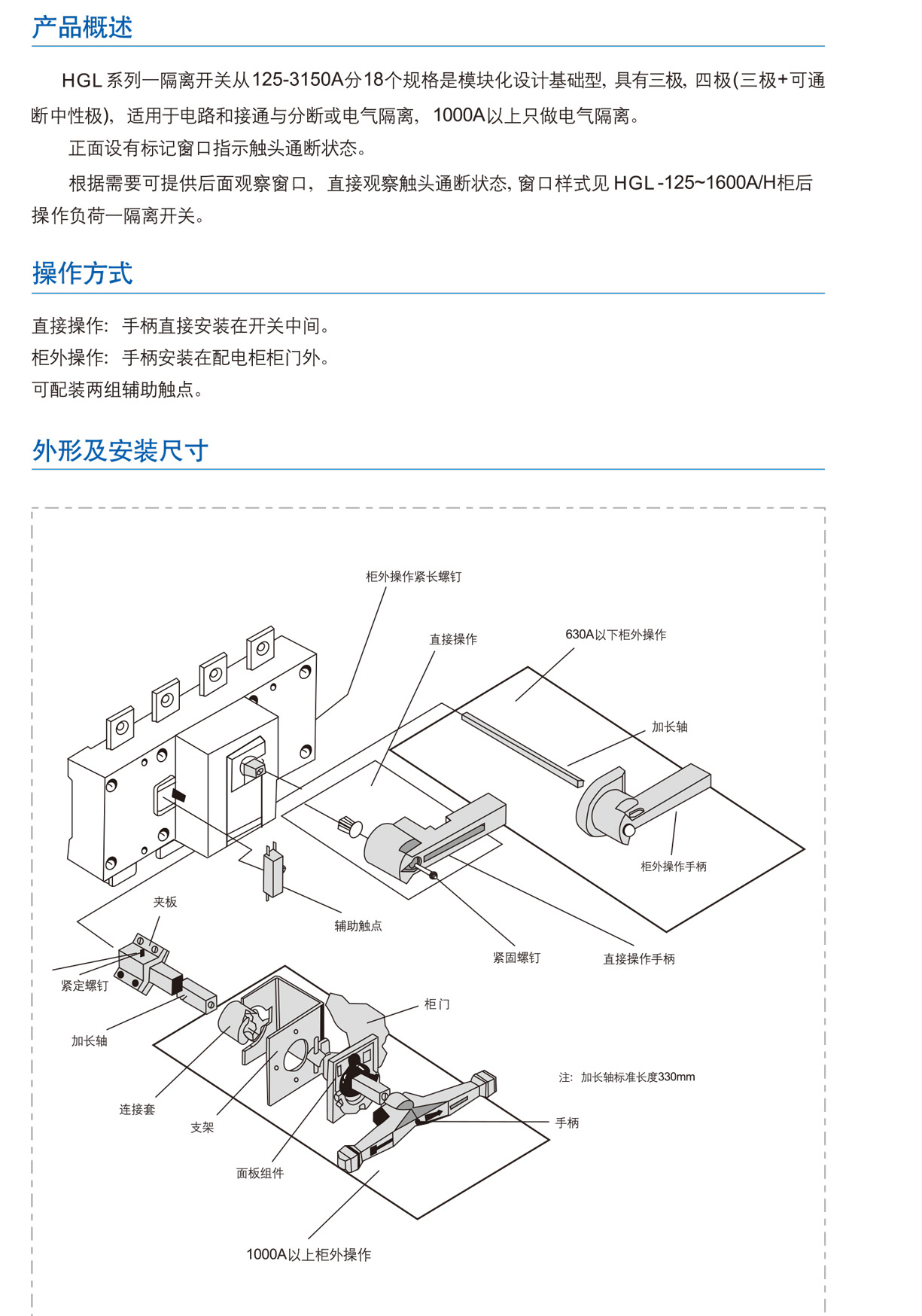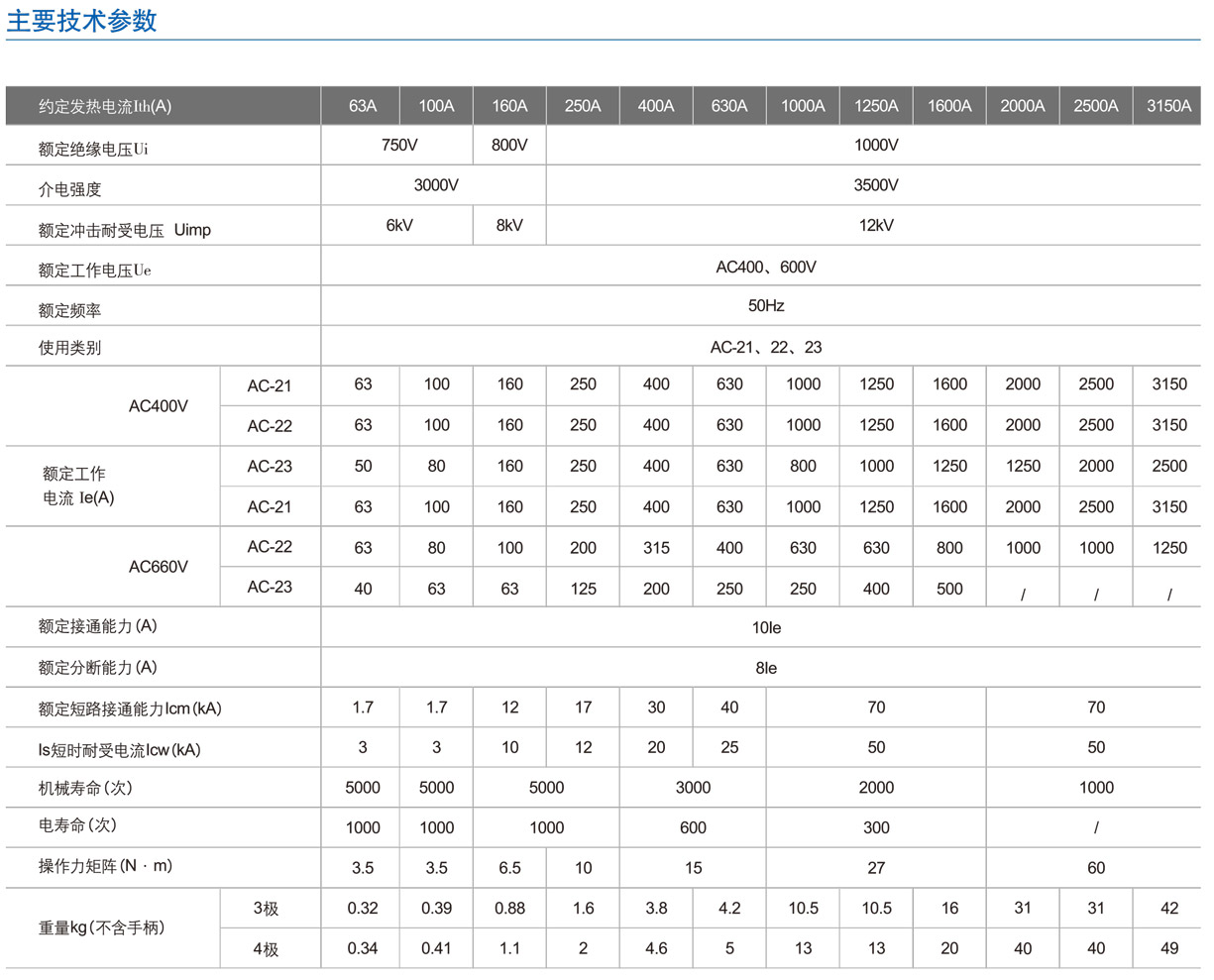 HGL系列一隔離開關從125-3150A分18個規格是模塊化設計基礎型,具有三,四級(三+可通斷中性),適用于電路和接通與分斷或電氣隔離,1000A以上只做電氣隔離。